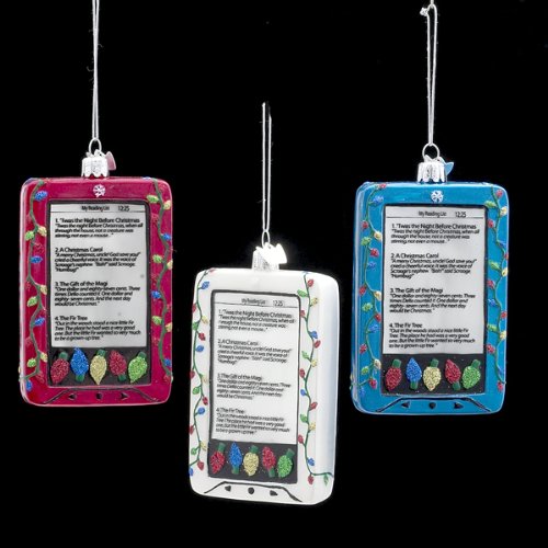 Buy Now : Club Pack of 12 Noble Gems Glass Pink, Blue & White E-Reader Christmas Ornaments