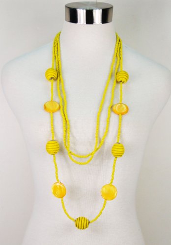 @@@ Mixed Chain Plastic Layered Long Necklace (A) - Yellow - - Review by Michael